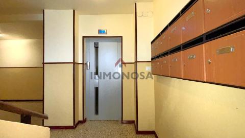 Edificio con ascensor y salvaescaleras en el portal, garaje comunitario de uso rotativo y aparcamiento privado en superficie.